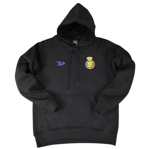 Vista-se com a Blusa de Frio Al-Nassr do Cristiano Ronado Preta com valor promocional. Logo mais a Blusa de Frio Al-Nassr do Cristiano Ronado Preta, por outro lado o destaque está a gola V com recorte reto frontal e logo mais as três listras em tamanho grande, aplicadas nas laterais do manto de maneira colorida. Confira os detalhes da camisa.