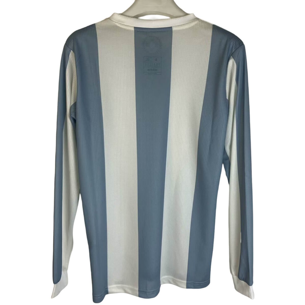 Vista-se com a Camisa Argentina 50 Anos AFA Home Azul Manga Longa com valor promocional. Por outro lado o destaque está na composição do material, sendo ele 100% poliéster, trazendo mais conforto ao vestir a sua camisa. Confira os detalhes da Camisa Argentina 50 Anos AFA Home Azul Manga Longa.