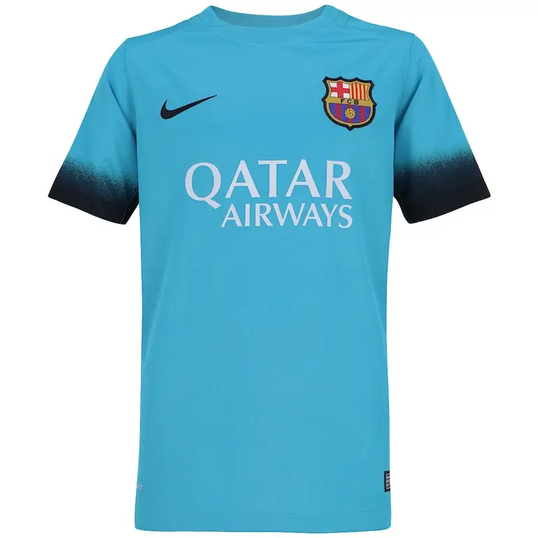 Vista-se com a Camisa Barcelona Third III Azul 2015/16 Masculina com valor promocional. Por outro lado o destaque está a gola V com recorte /reto frontal e logo mais as três listras em tamanho grande, aplicadas nas laterais do manto de maneira colorida. Confira os detalhes da Camisa Barcelona Third III Azul 2015/16 Masculina.