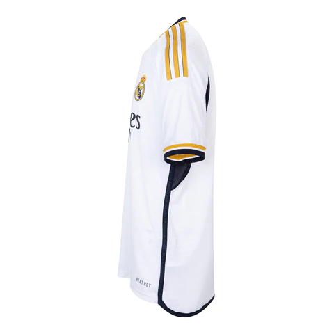 Vista-se com a Camisa Real Madrid Campeão Supercopa da Espanha 2024 Edição Jogador com valor promocional. Por outro lado o destaque está a gola V com recorte /reto frontal e logo mais as três listras em tamanho grande, aplicadas nas laterais do manto de maneira colorida. Confira os detalhes da Camisa Real Madrid Campeão Supercopa da Espanha 2024 Edição Jogador.