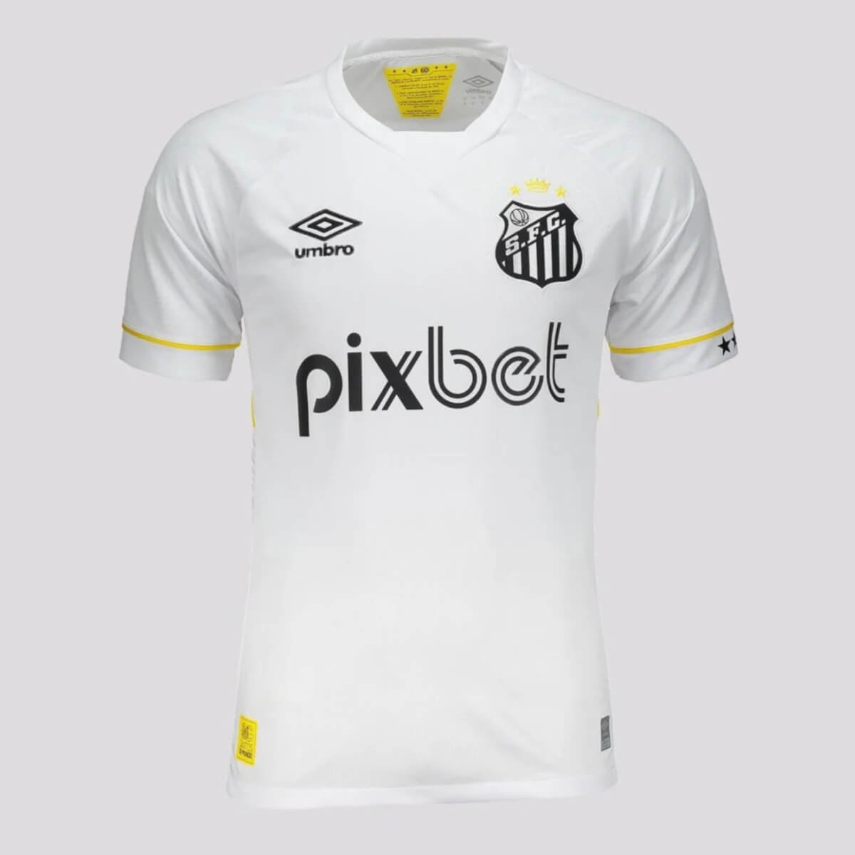Vista-se com a Camisa Santos FC Branca Titular Masculina 2023/24 C/Patrocínio com valor promocional. Por outro lado o destaque está na composição do material, Fabricada e Produzida pela Umbro, sendo ele 100% poliéster, trazendo mais conforto ao vestir a sua camisa. Confira os detalhes da Camisa Santos FC Branca Titular Masculina 2023/24 C/Patrocínio.