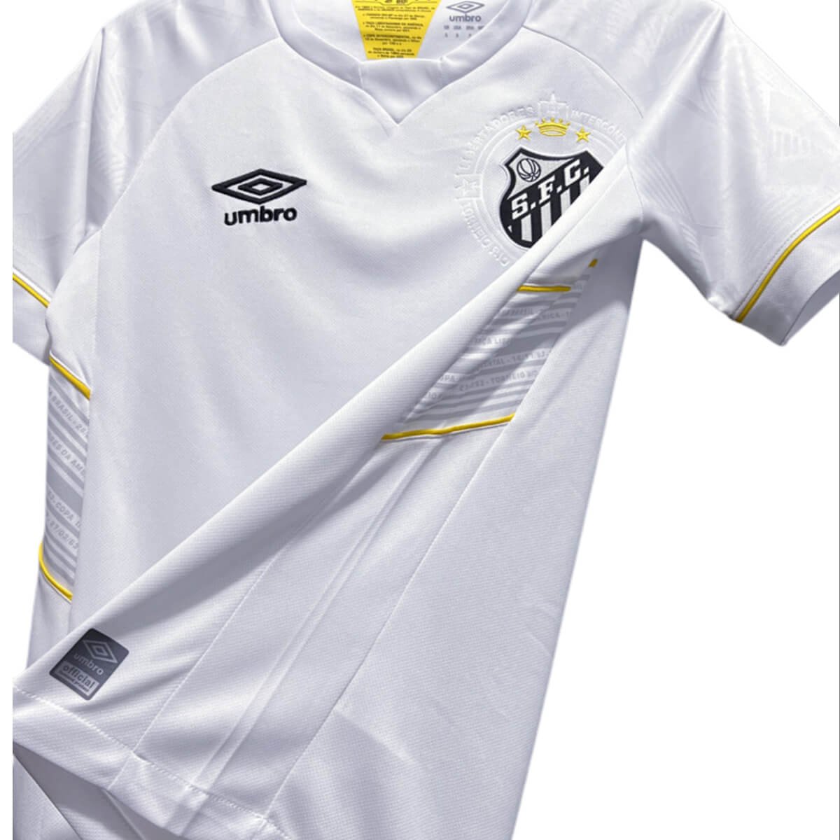 Vista-se com a Camisa Santos FC Branca Titular Masculina 2023/24 com valor promocional. Por outro lado o destaque está na composição do material, Fabricada e Produzida pela Umbro, sendo ele 100% poliéster, trazendo mais conforto ao vestir a sua camisa. Confira os detalhes da Camisa Santos FC Branca Titular Masculina 2023/24.