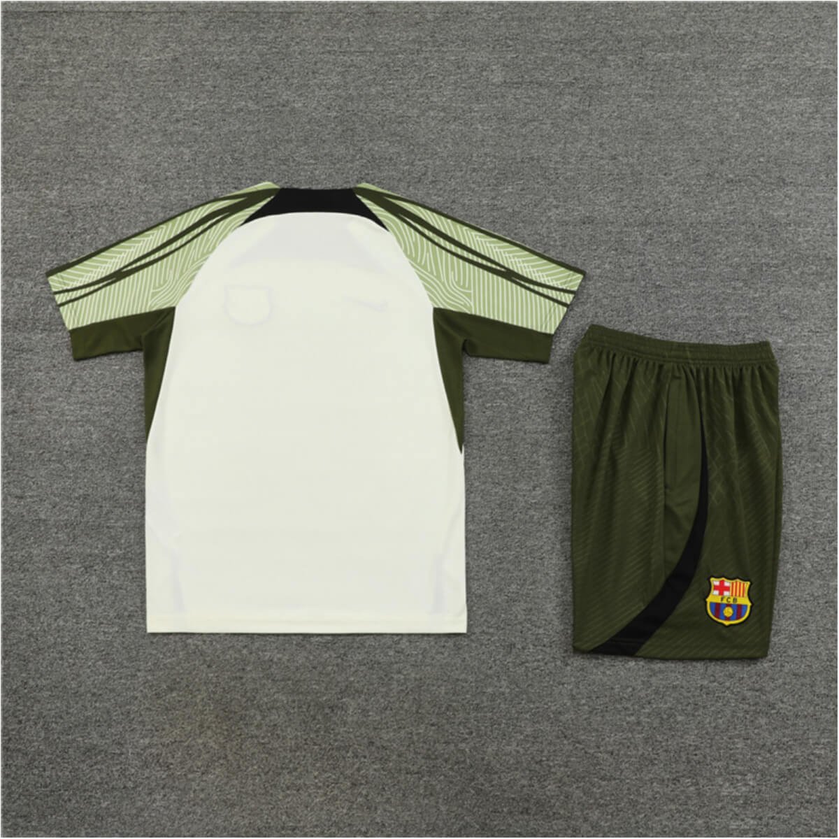 Conjunto Barcelona Treino Camisa e Short Branco/Musgo 2023/24
