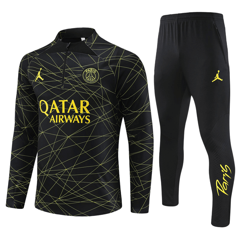 Conjunto de Treino PSG Jaqueta + Calça Preta/Amarela 2022/23
