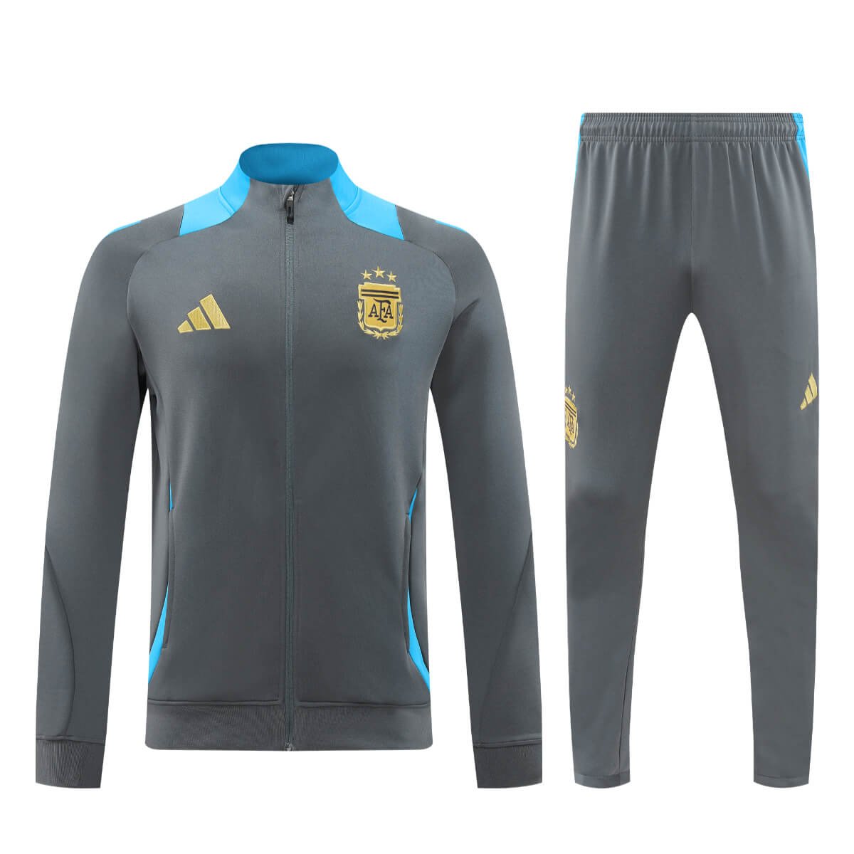 Vista-se com o Conjunto Jaqueta Argentina Treino Calça Cinza 2024/25 com valor promocional. Logo o Conjunto Jaqueta Argentina Treino Calça Cinza 2024/25 Fabricado e produzido pela Adidas tem o seu destaque no bordado do Conjunto, trazendo conforto e estilo para o dia a dia ou para atividades físicas. Confira os detalhes do conjunto logo abaixo.