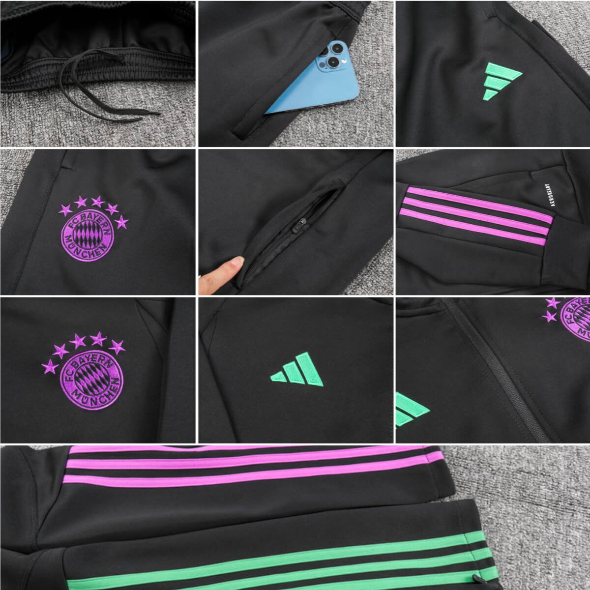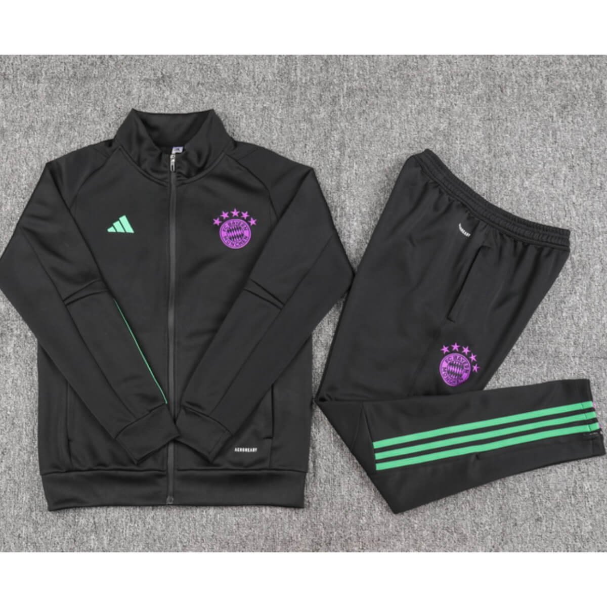 Vista-se com o Conjunto Jaqueta e Calça Bayern de Munique Preto Treino 2023/24 com valor promocional. Logo o Conjunto Jaqueta e Calça Bayern de Munique Preto Treino 2023/24 Fabricado e produzido pela Adidas tem o seu destaque no bordado do Conjunto, trazendo conforto e estilo para o dia a dia ou para atividades físicas. Confira os detalhes do conjunto logo abaixo.
