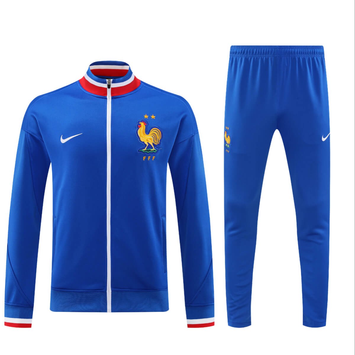 Vista-se com o Conjunto Jaqueta e Calça França Azul Treino 2024/25 com valor promocional. Logo o Conjunto Jaqueta e Calça França Azul Treino 2024/25 Fabricado e produzido pela Nike tem o seu destaque no bordado do Conjunto, trazendo conforto e estilo para o dia a dia ou para atividades físicas. Confira os detalhes do conjunto logo abaixo.