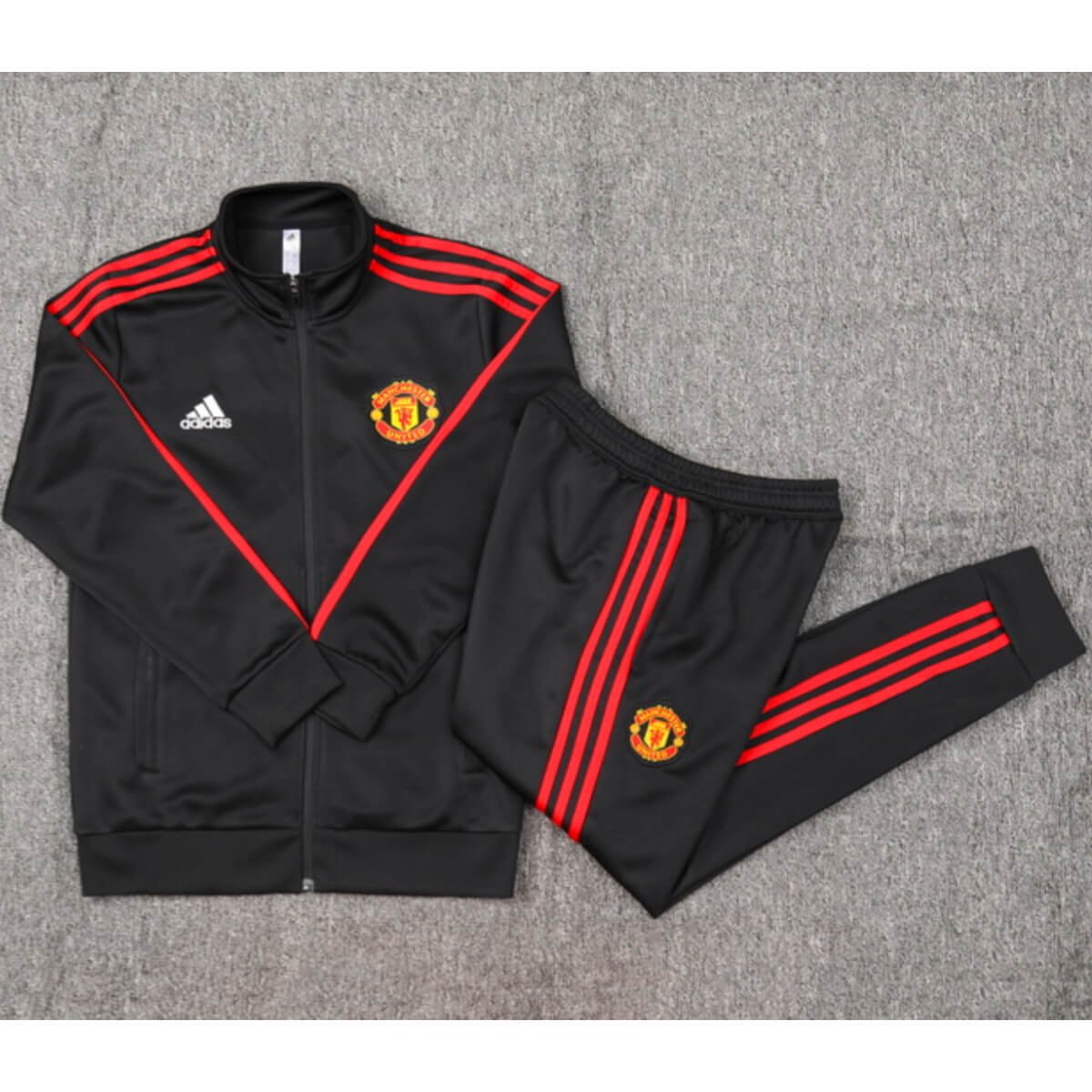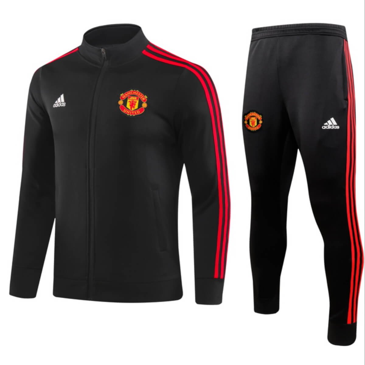Vista-se com o Conjunto Jaqueta e Calça Man Utd Preto Treino 2023/24 com valor promocional. Logo o Conjunto Jaqueta e Calça Man Utd Preto Treino 2023/24 Fabricado e produzido pela Adidas tem o seu destaque no bordado do Conjunto, trazendo conforto e estilo para o dia a dia ou para atividades físicas. Confira os detalhes do conjunto logo abaixo.