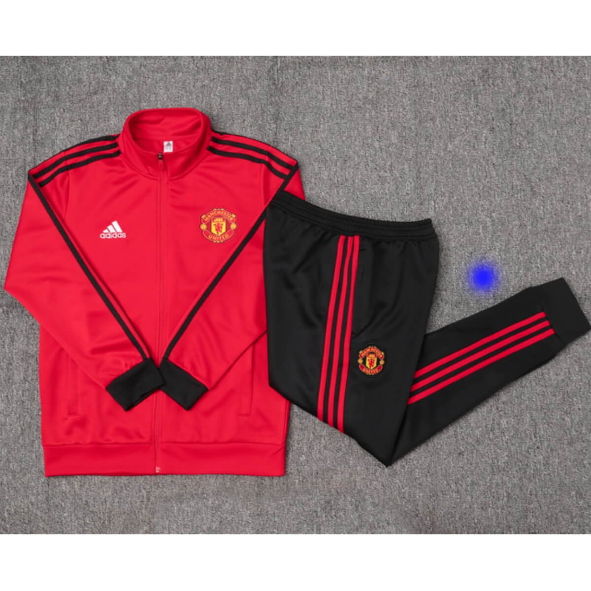 Vista-se com o Conjunto Jaqueta e Calça Man Utd Vermelho Treino 2023/24 com valor promocional. Logo o Conjunto Jaqueta e Calça Man Utd Vermelho Treino 2023/24 Fabricado e produzido pela Adidas tem o seu destaque no bordado do Conjunto, trazendo conforto e estilo para o dia a dia ou para atividades físicas. Confira os detalhes do conjunto logo abaixo.