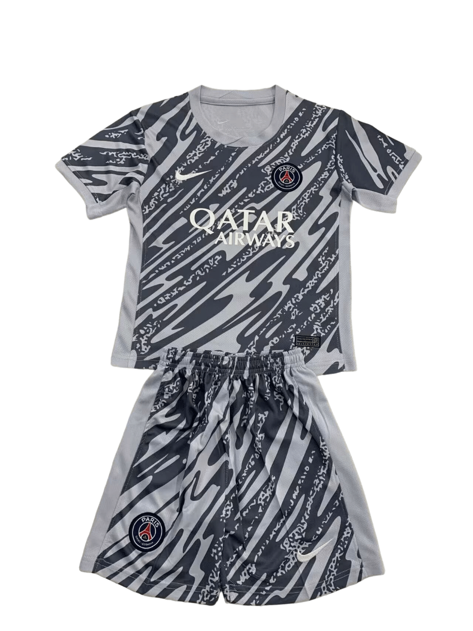 - Nome do produto:Kit Infantil PSG Preta/Cinza Goleiro 2024/25 Unissex