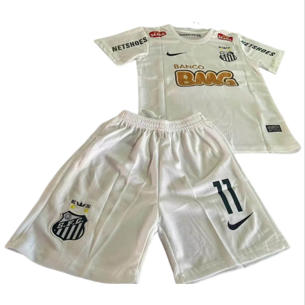 - Nome do produto: Kit Infantil Santos Neymar Jr. #11 Branca 2011 Nike Unissex