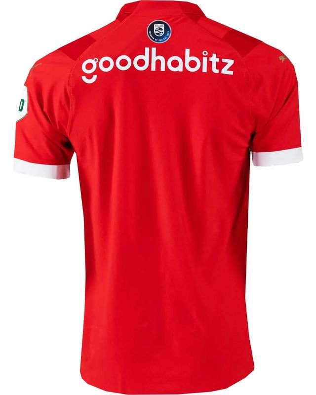 Vista-se com o Nova Camisa PSV Vermelha Titular Home 2023/24 Masculina com valor promocional. Logo mais o Nova Camisa PSV Vermelha Titular Home 2023/24 Masculina, por outro lado o destaque está a gola V com recorte reto frontal e logo mais as três listras em tamanho grande, aplicadas nas laterais do manto de maneira colorida. Confira os detalhes da camisa.